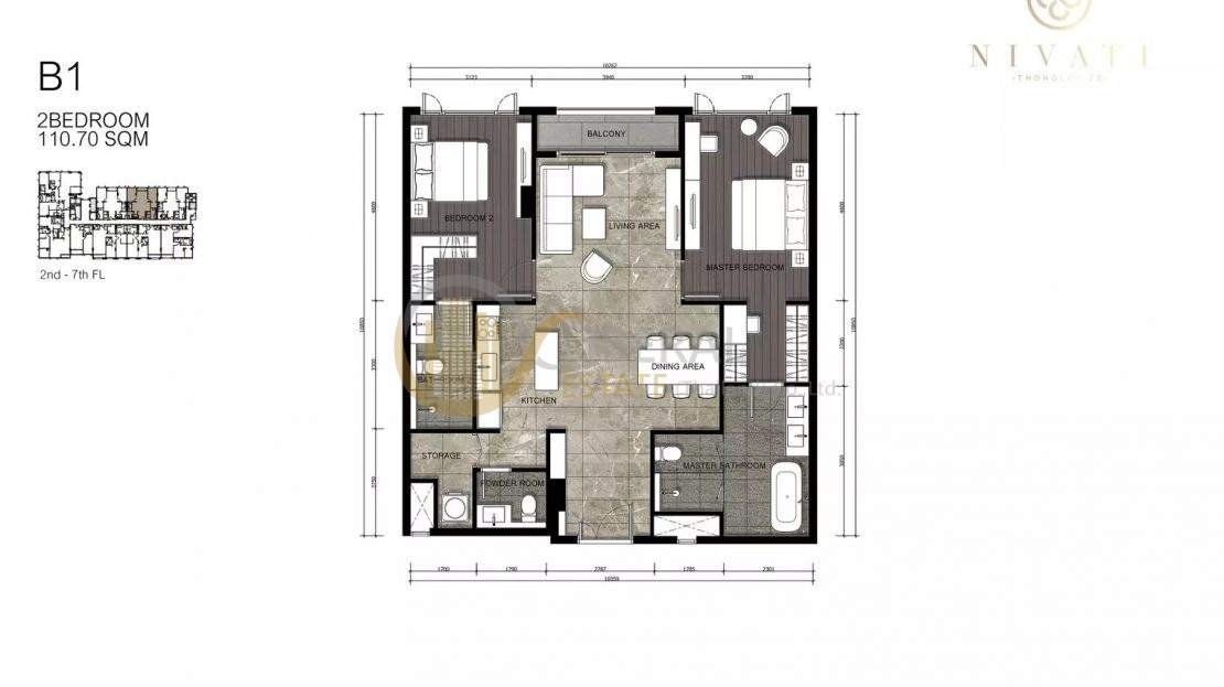 LTH2152 – Nivati Thonglor 23 condo FOR SALE 2 beds 2 baths size 111.03 Sq.M. BTS Thonglor station ONLY 28,871,643 THB