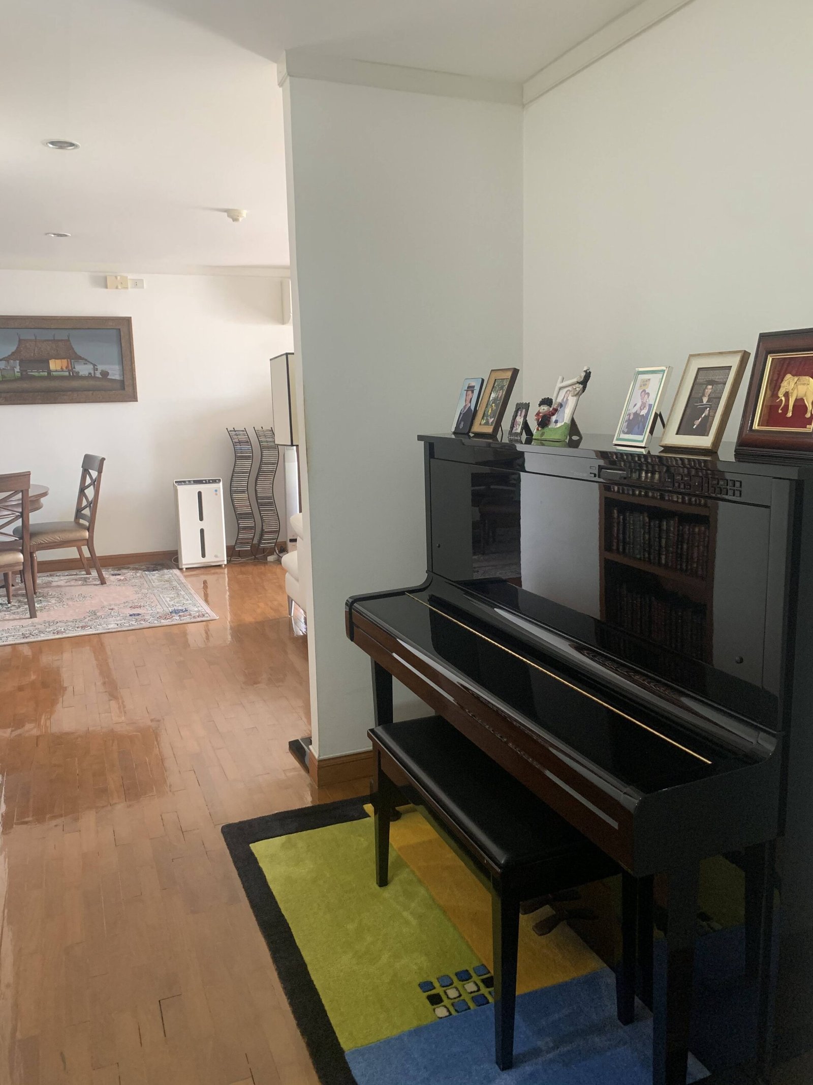 The piano needs tuning but otherwise fully functional.