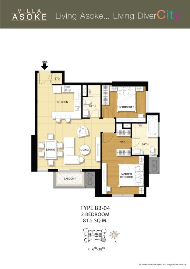LTH6246 – Villa Asoke FOR SALE 2 beds 2 baths size 81 Sq.M. MRT Phetchaburi station ONLY 11.5 MB